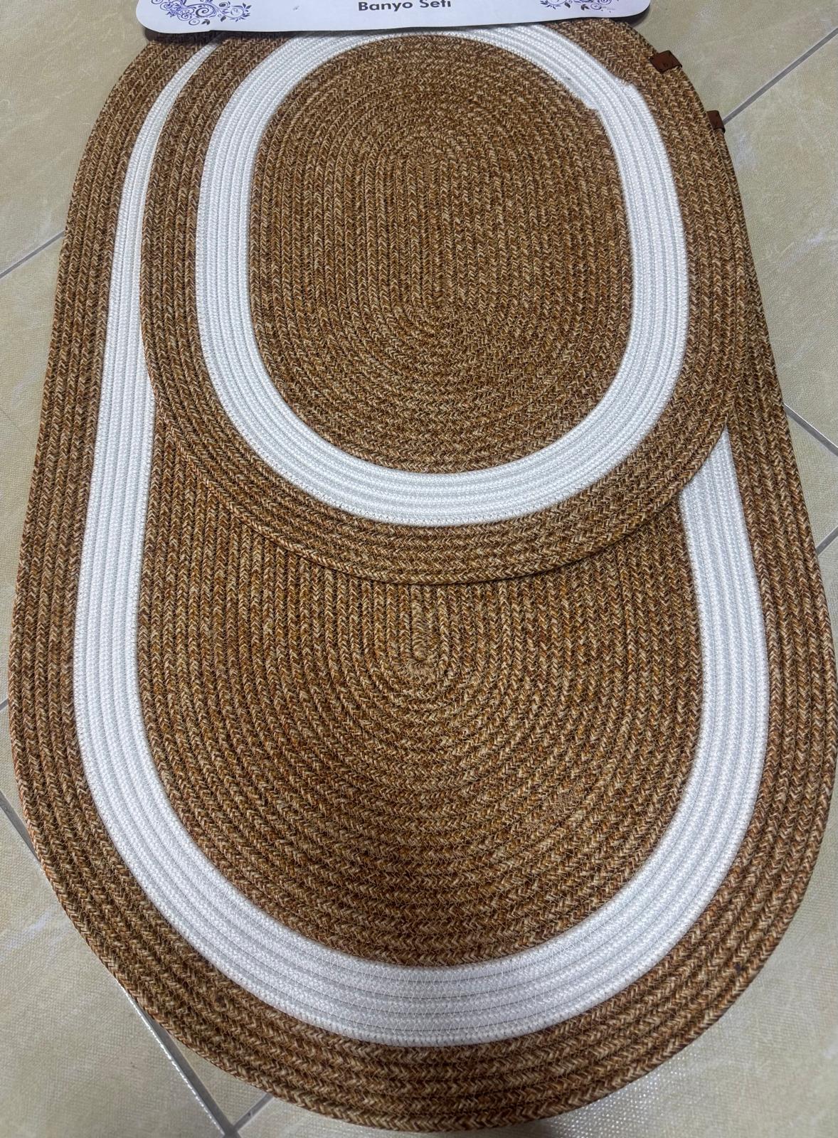 2li Jüt Banyo Paspas Seti (Hasır ve Beyaz Şeritli)